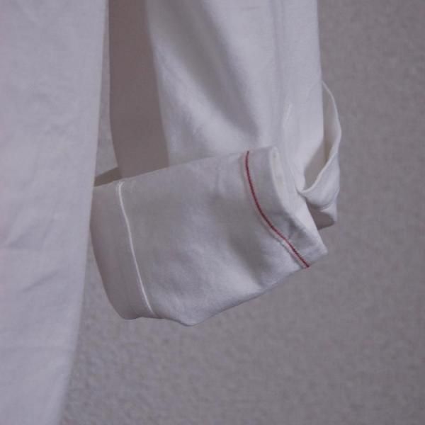 フロントをあけて羽織ったり、袖をロールアップした時に赤いラインが