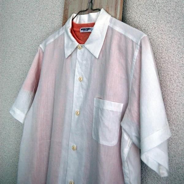 着るとちょっとウキウキしてくる シロイアロハシャツです。